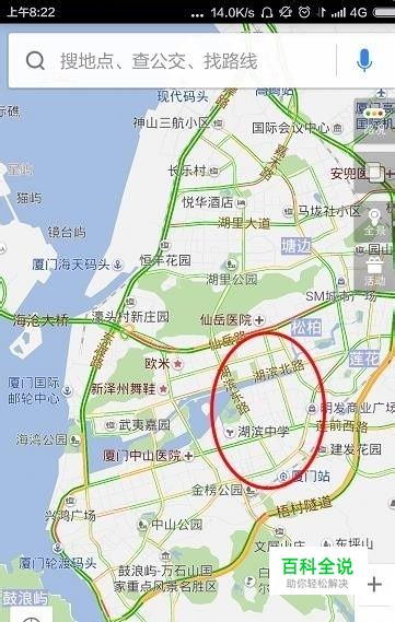 进入到地图的主页面,我们可以看到顶部有个搜索框