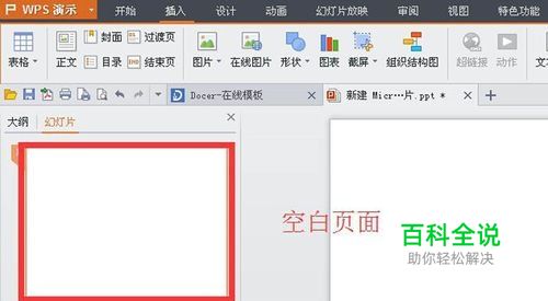 打开PPT的界面,删除首页ppt后,在左边的空白处,新建一张空白的ppt:
