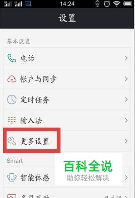 下拉找到并打开【更多设置】显示更多设置的菜单。