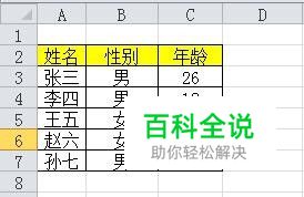 小编新建了一张表格,如下。 姓名,性别和年龄,下面是相应的对应值。