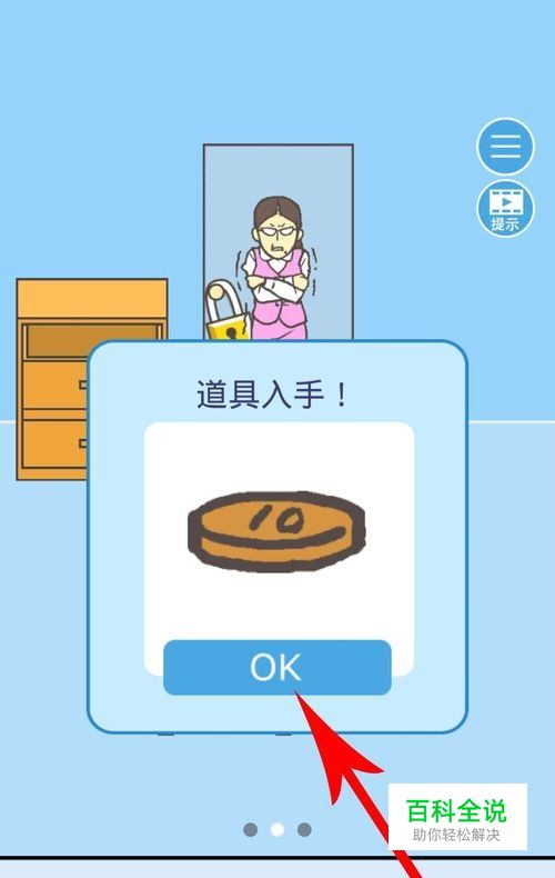 打开第2页,点击柜子的第1个抽屉得到一枚金币道具