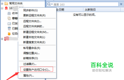 对需要设置口令邮箱进行右键后,弹出菜单中一个为“访问口令”的选项菜单。