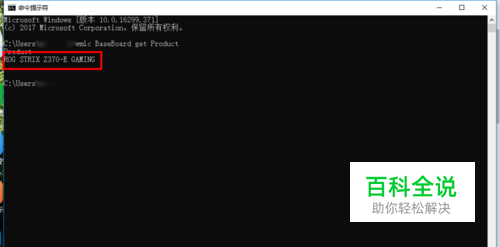 获得主板型号 wmic BaseBoard get Product 可以看到型号是rog z370e