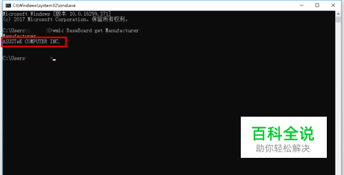 获得主板厂商 在cmd中输入以下命令回车 wmic BaseBoard get Manufacturer 可以看到我的主板是华硕