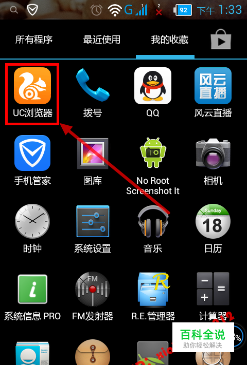首先在手机屏幕上找到“手机浏览器”,此例以“手机UC 浏览器”为例。点击“ UC浏览器”运行。