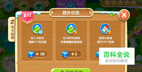 额外任务 1)110秒内打掉5个巨石像 2)50秒内找到隐藏船锚 3)用火箭消灭50个怪