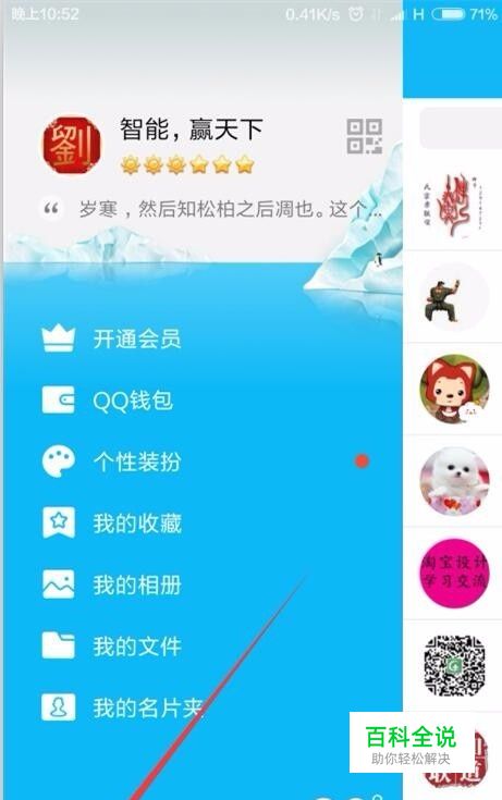 登录自己的手机QQ,在手机屏幕左上角的个人 QQ头像--- 设置入口界面。