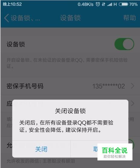 同样道理,如果是已经开启了,需要关闭的就再点一次这个开关就可以进行控制了,因为开启后必须要手机QQ验证才能登陆,如果手机不在身边就无法操作了。