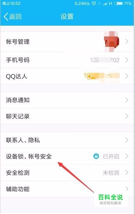 账号安全点击进行设置,开启设备锁来保证QQ的安全性