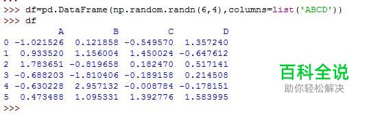 先创建一个6行4列的DataFrame数据框
