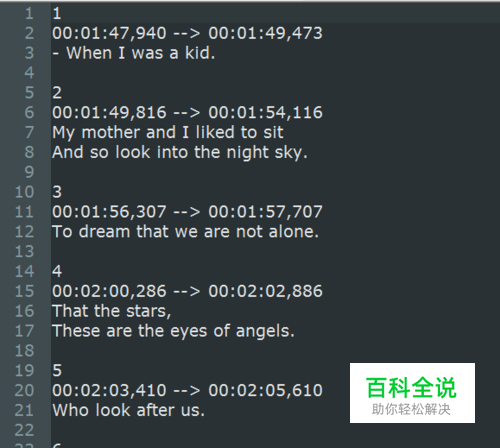 首先,准备好英文字幕的文件,打开后如下