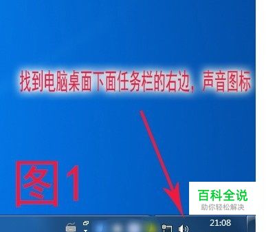 首先找到电脑桌面下面任务栏右边的一个小喇叭一样的声音图标,如图1所示;(如果找不到的话,可以点击“开始”菜单,打开“控制面板”然后找到“声音”图标,如图2所示)