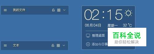 现在桌面助手已经打开了。在桌面上可以看到桌面助手的四个图框。分别是桌面助手归纳收集整理的,我的文件文本,我的文件夹和应用主窗口。