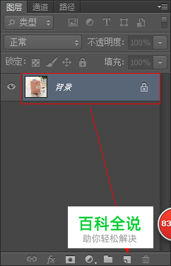 在图层面板中,我们发现背景已经锁定,所以我们要先复制一个图层,选择背景图层拖到新建按钮上,如图