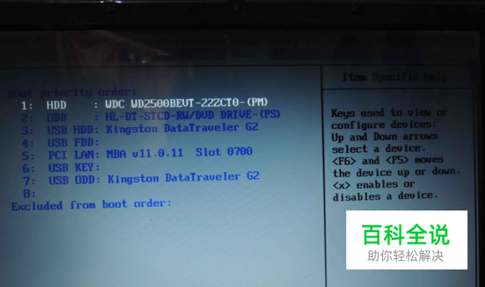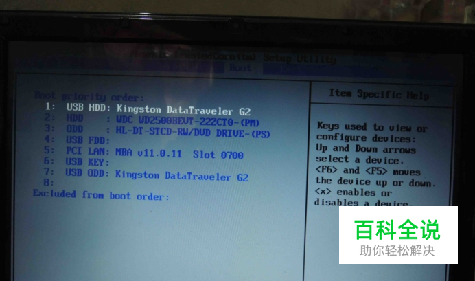 根据BIOS启动提示F5/F6是修改,我们选中U盘启动来上移USB HDD,这样的话USB启动为第一项了,确定U盘启动后,我们按F10进行保存退出,这样电脑在启动后首先是进入U盘。