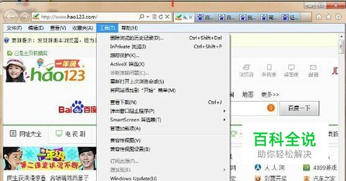 打开Internet explorer,点击“工具”,选择“Internet选项”。