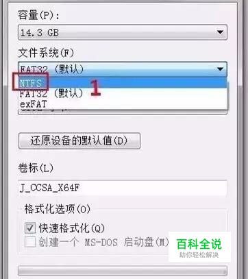 在电脑里右击U盘盘符选择格式化,将默认的【文件系统】由【FAT32(默认)】改为【NTFS】。