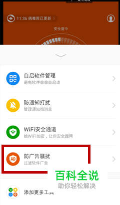 打开防广告骚扰,卫士会自动扫描出包含广告的手机软件。