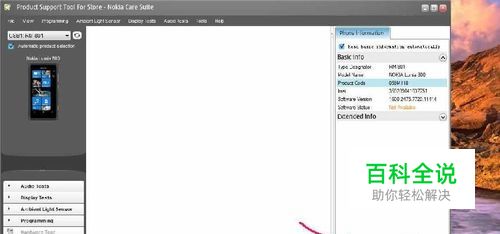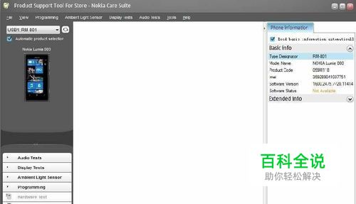 2、安装完毕后 启动 Nokia Care Suite 将 Lumia 800 连接至计算机 在右侧的 Phone imformation 中会显示相关信息 需要记录 Product Code 用于分辨固件
