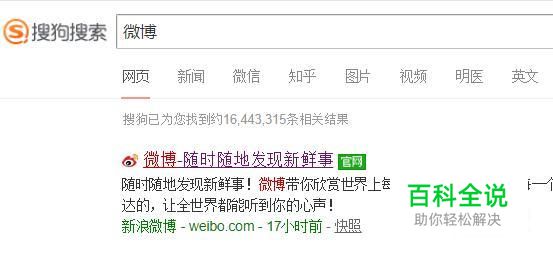 首先,在搜狗浏览器中输入微博并点击回车键,如下图所示。