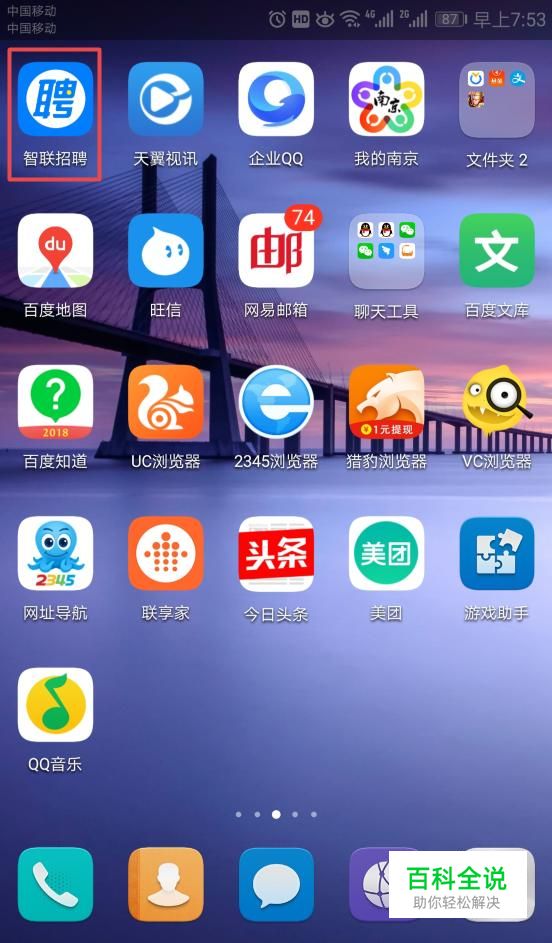 首先,我们打开我们的手机,然后我们点击手机桌面上的智联招聘;
