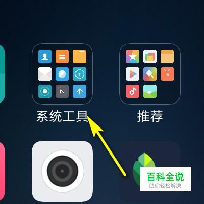 在手机桌面上,手指点一下系统工具。
