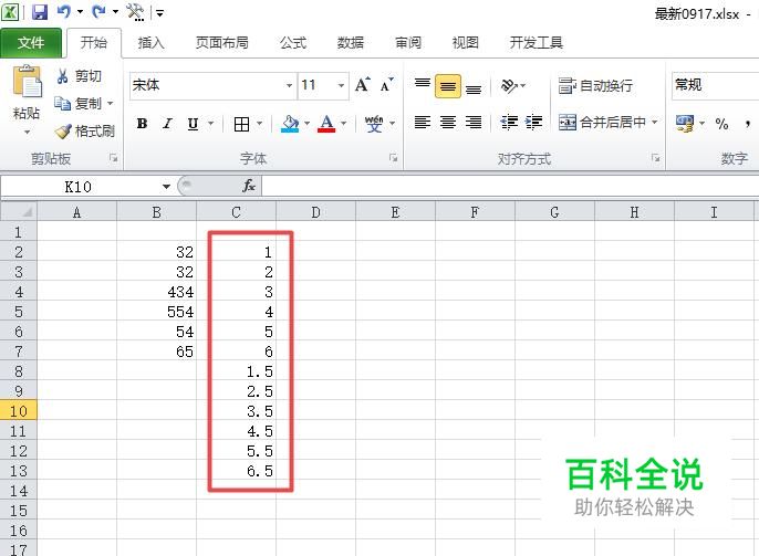 然后我们在这组数字后面的一列中输入如图所示的数字;