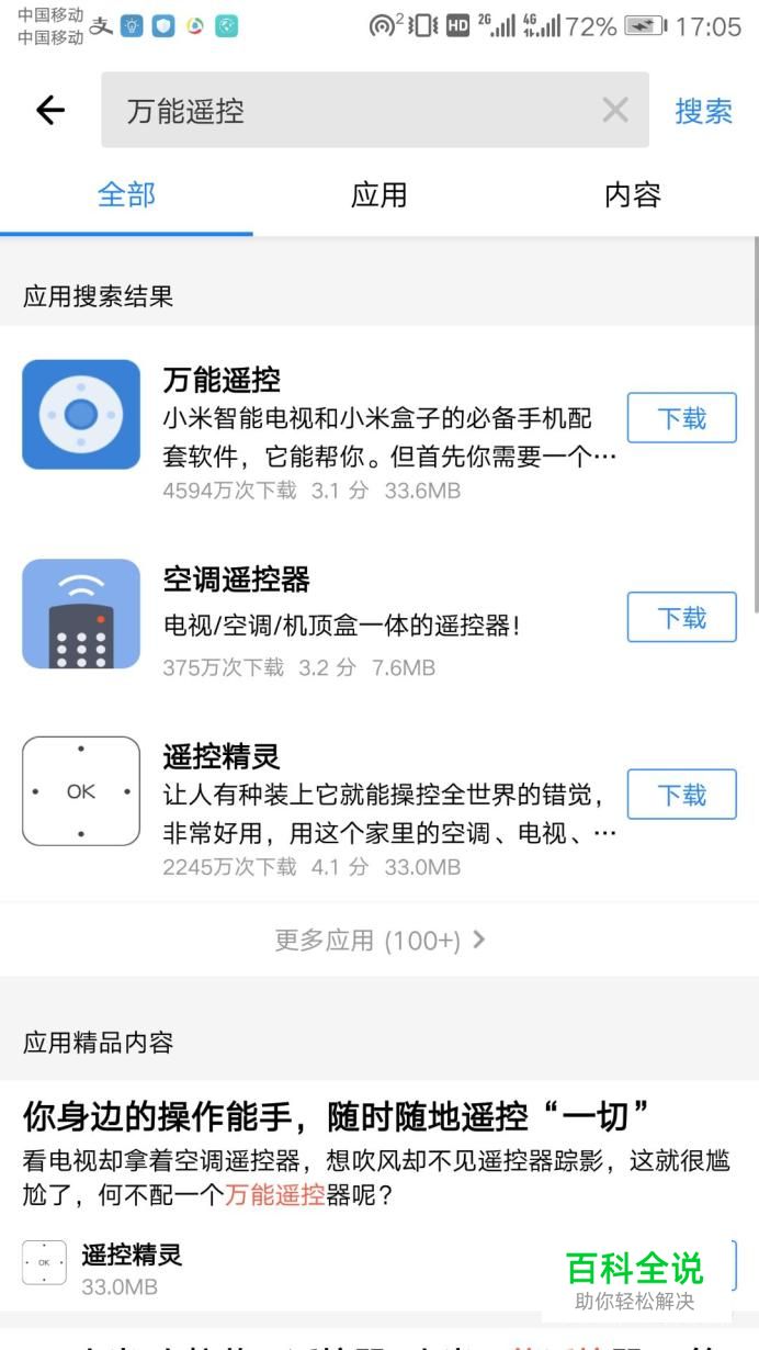 如果手机上没有自带的万能遥控,可以去应用商店下载一个万能遥控用。