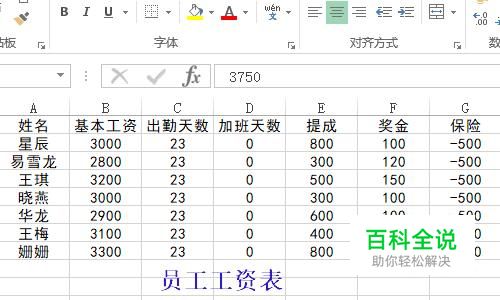 不论是通过何种方式来制作工资条,最起码的员工Excel工资表是必不可少的,如下图所示就是小编编辑好的一篇工资表;