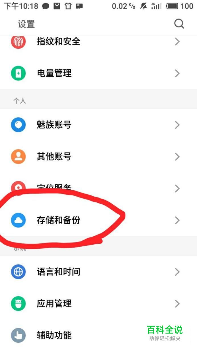 在设置里面向下拉,找到个人里面的“储存和备份”。