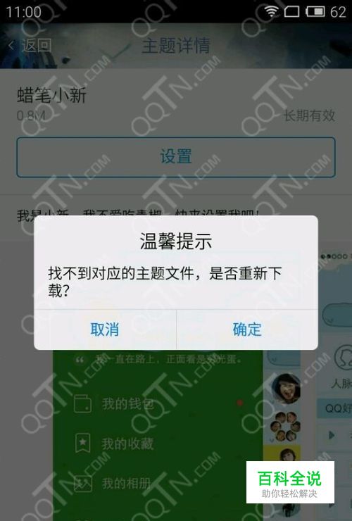 问题二:找不到对应的文件 找不到对应的主题文件,是否重新下载 解决办法: 这个问题在下载主题时会经常出现,小编建议大家重启手机或是过会再试就可以下载了, 应该是主题包暂时丢失的缘故。