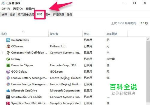 若想禁止软件开机启动,则选中想要禁止的软件,再点右下角的“禁用”按钮