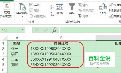 返回到表格以后,我们就发现这组身份证号码里面的年月日被提取出来了,如下图;
