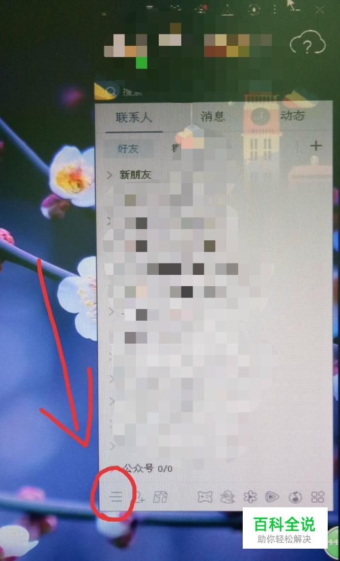 首先打开QQ界面,点击左下角的主菜单,如下图所示。