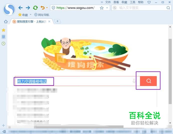 首先,我们打开我们电脑上面的浏览器,然后我们在搜索引擎中输入格力空调维修电话,之后我们点击搜索按钮;