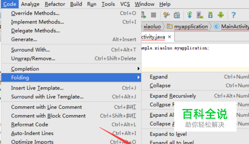 弹出了下拉菜单中进行选择为folding的选项菜单。