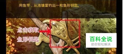 将发光物品勾上来之后,我们看见钓鱼竿有一把鱼形钥匙,点击获取钥匙(如图红框所示)。