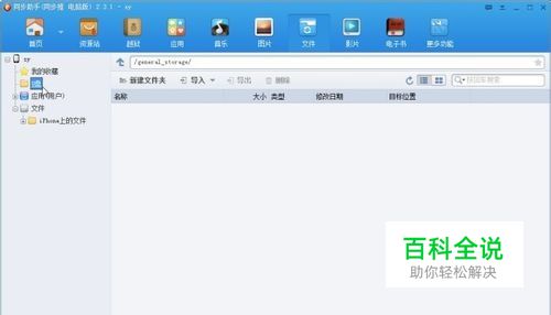 打开 同步助手连接好iPhone手机,然后进入“文件”管理界面。单击左方的“U盘”即可进入文件管理界面了。