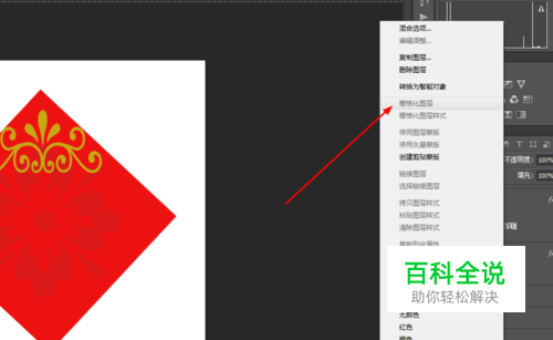 选择自定形状工具,画另一个花形的装饰,点击花形的图层右键栅格化图层,再把花形图层的不透明度改为80%,如图所示