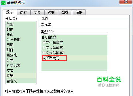 数字的选项的最后一项,特殊字符的设置里有一项中文大写字的转变,确定即可完成设置。