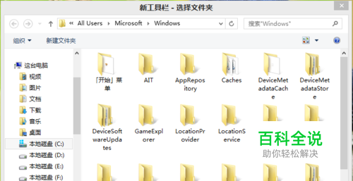 此时弹出一个窗口,输入C:\Users\All Users\Microsoft\Windows-》新建文件夹