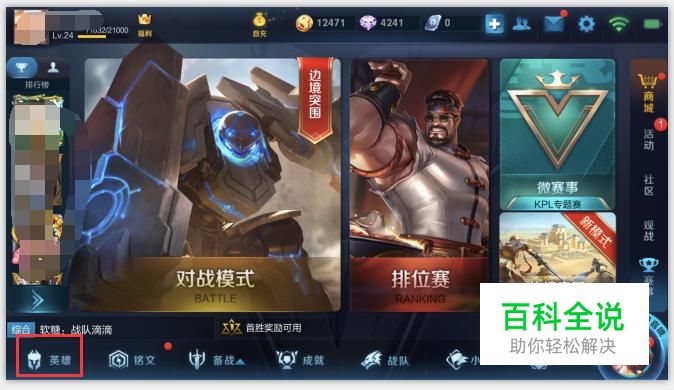 首先进入游戏来到游戏大厅,点击底部左下角的“英雄”栏目,如图所示