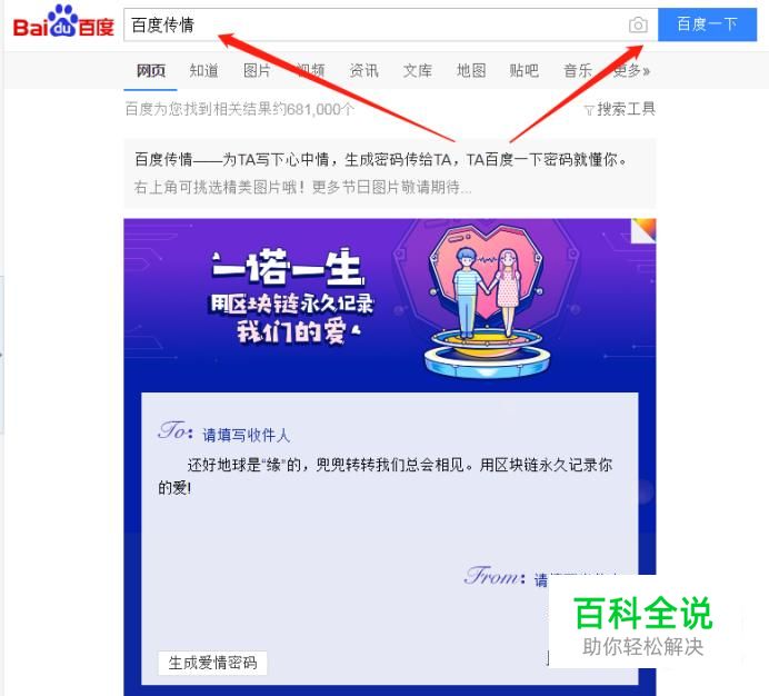 填写完成后我们需要设置一个密码,或者随机生成一组密码,然后将这组密码发送给你要表白的人,让其在百度搜索框内输入这密码即可查看到你填写的内容了。