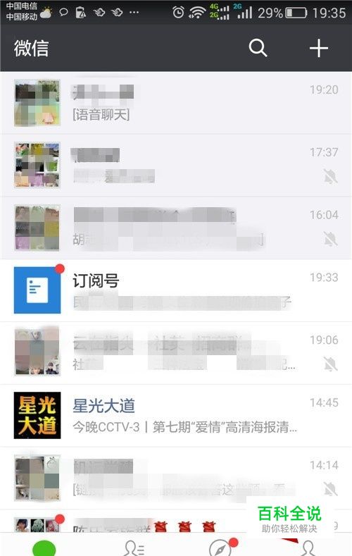 在手机上打开微信,进入到以下截面,点击“我”图标,进入下一截面;