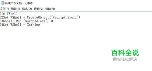 首先以隐藏系统自带的Win32版《写字板》程序为例,在记事本中写入如下代码 1.Dim WShell 2.Set WShell = CreateObject("WScript.Shell") 3.WShell.Run "wordpad.exe", 0 4.Set WShell = Nothing