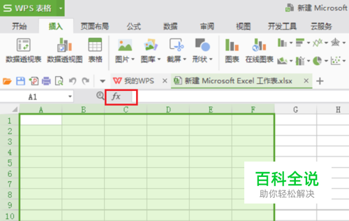 第一步在我们的电脑里面打开表格,选择要产生随机数字的区域,点击fx,如下图所示: