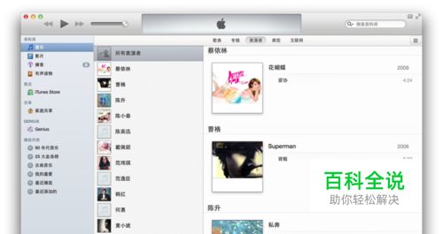 iTunes是苹果公司发布的一款集音乐购买、下载、管理、播放等功能于一身的软件,可运行在Mac系统、windows系统上; 如图是音乐管理界面