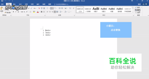 进入Word,点击替换