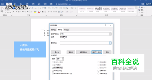 在查找栏输入“(0—9)”,将使用通配符打钩,替换为栏不填