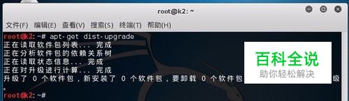 如果是纯命令行操作,建议输一下clear清下屏 输入代码: apt-get update apt-get upgrade apt-get dist-upgrade #这一步不是必须的!可以不要,因为最新版本的软件不一定对自己电脑合适,请酌情输入!